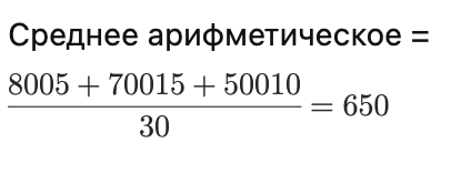 \frac{800×5 + 700×15 + 500×10}{30} = 650 ₽